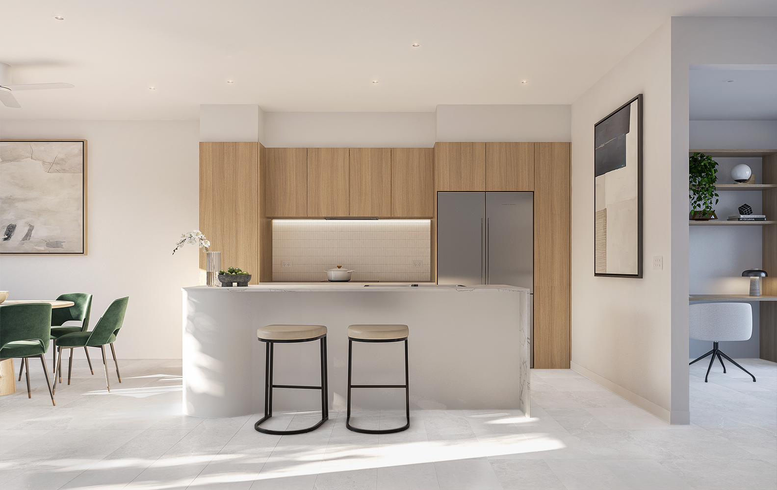 USB charging ports on power point to kitchen, each side of bedroom 1 bedhead wall and study (where applicable).